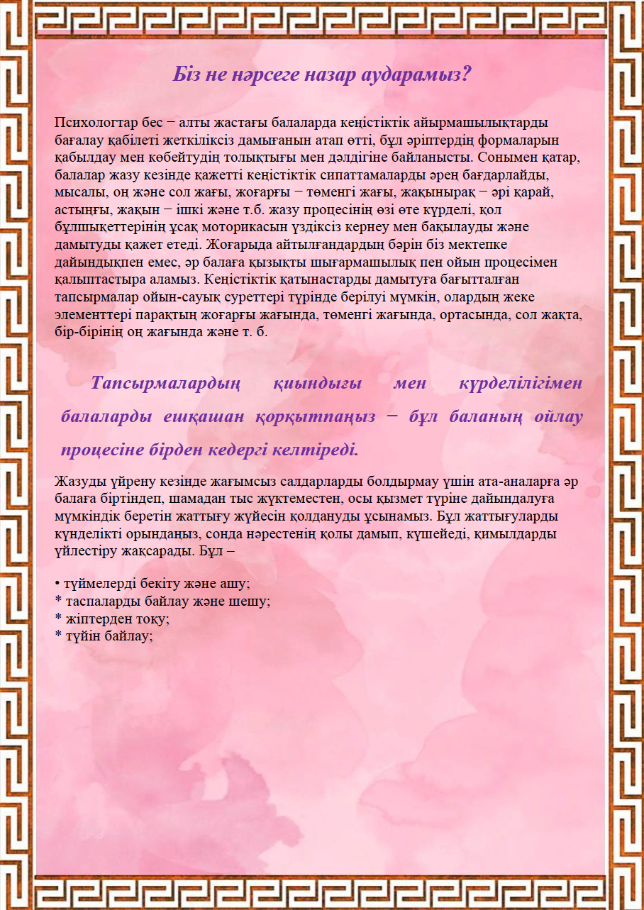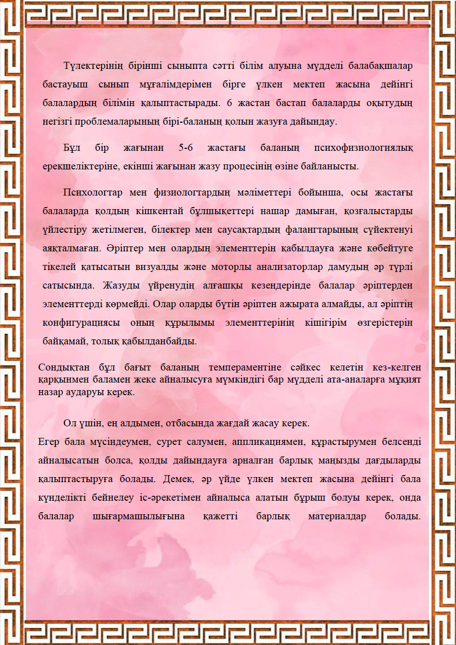 » Ата-аналарға кеңес беу."Ұсақ моториканы дамыту.Қолды жазуға үйрету"