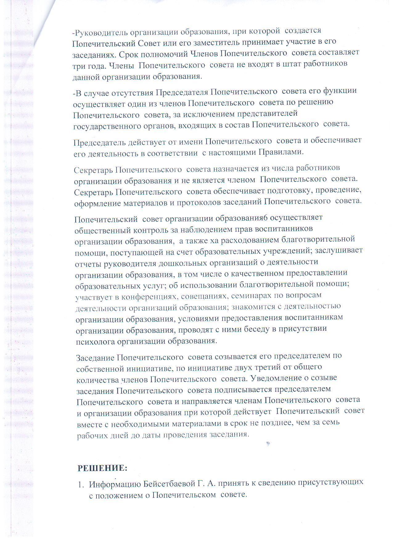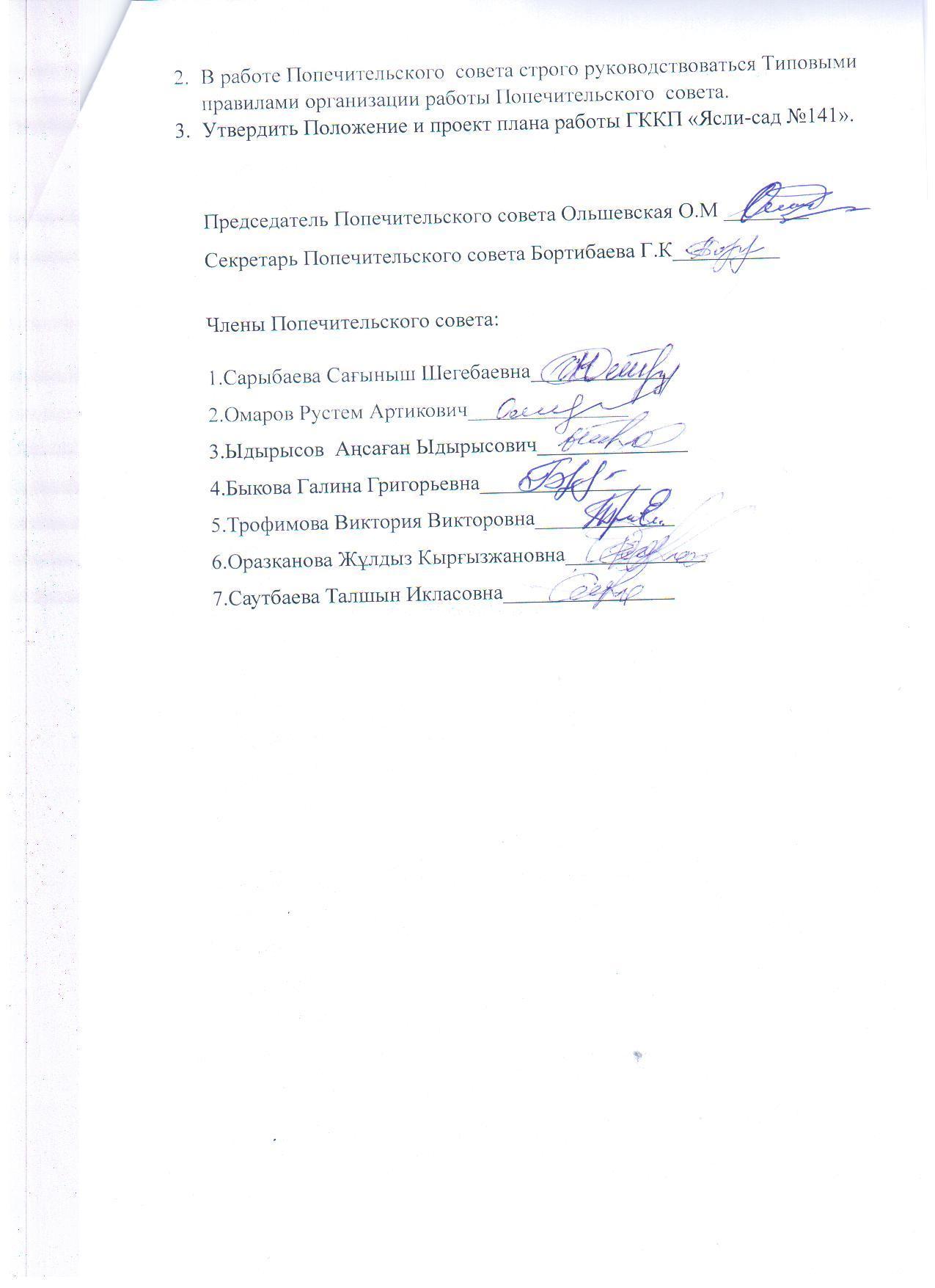 План работы Попечительского совета ГККП «Ясли-сад №141»