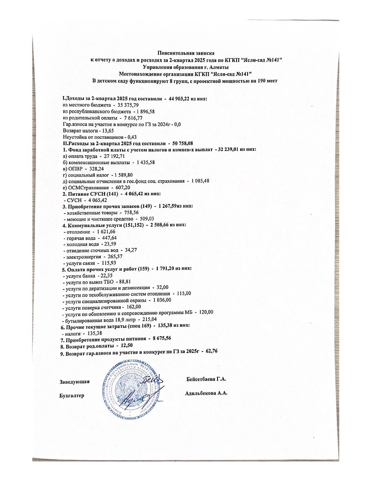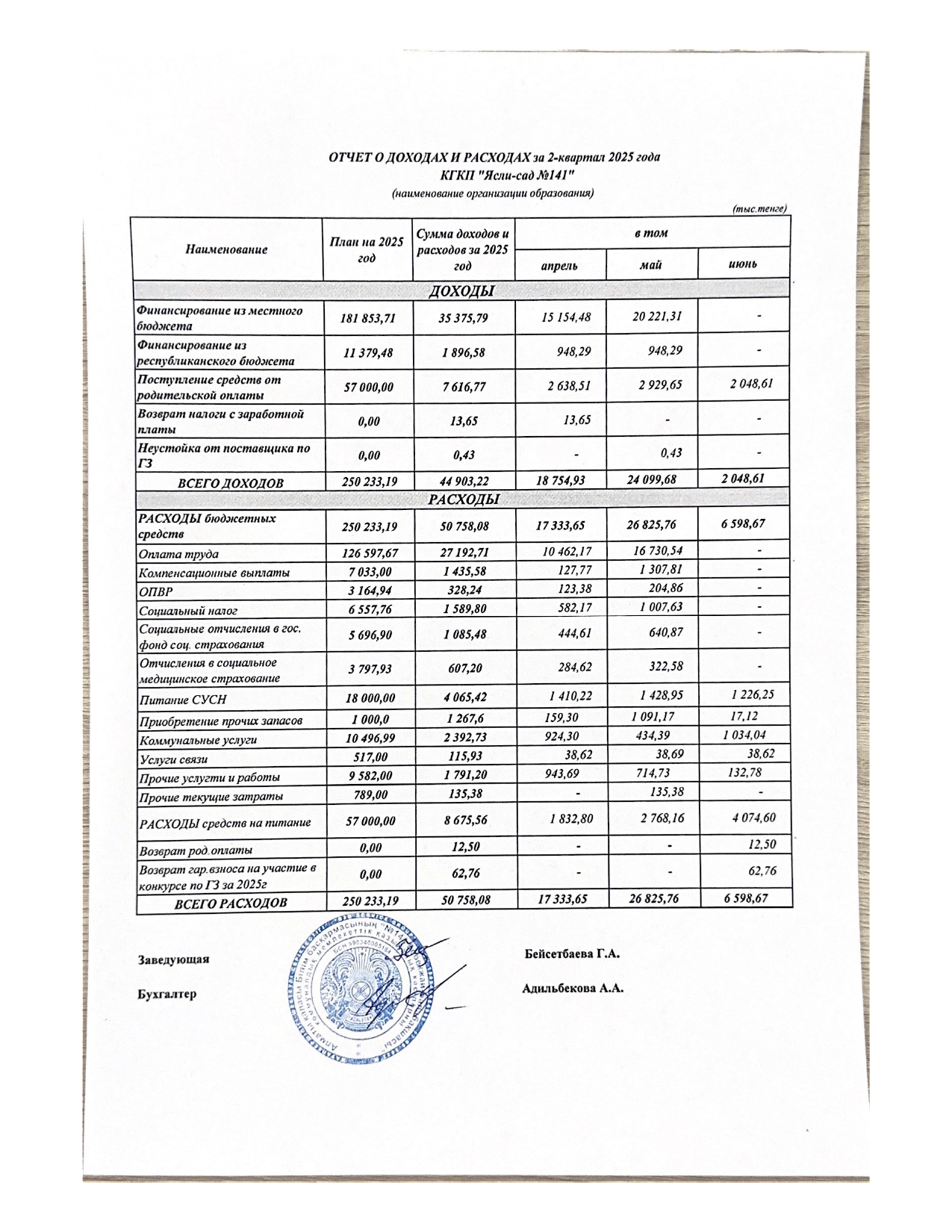 » Отчет о доходах и расходах за 2-квартал 2025 год.