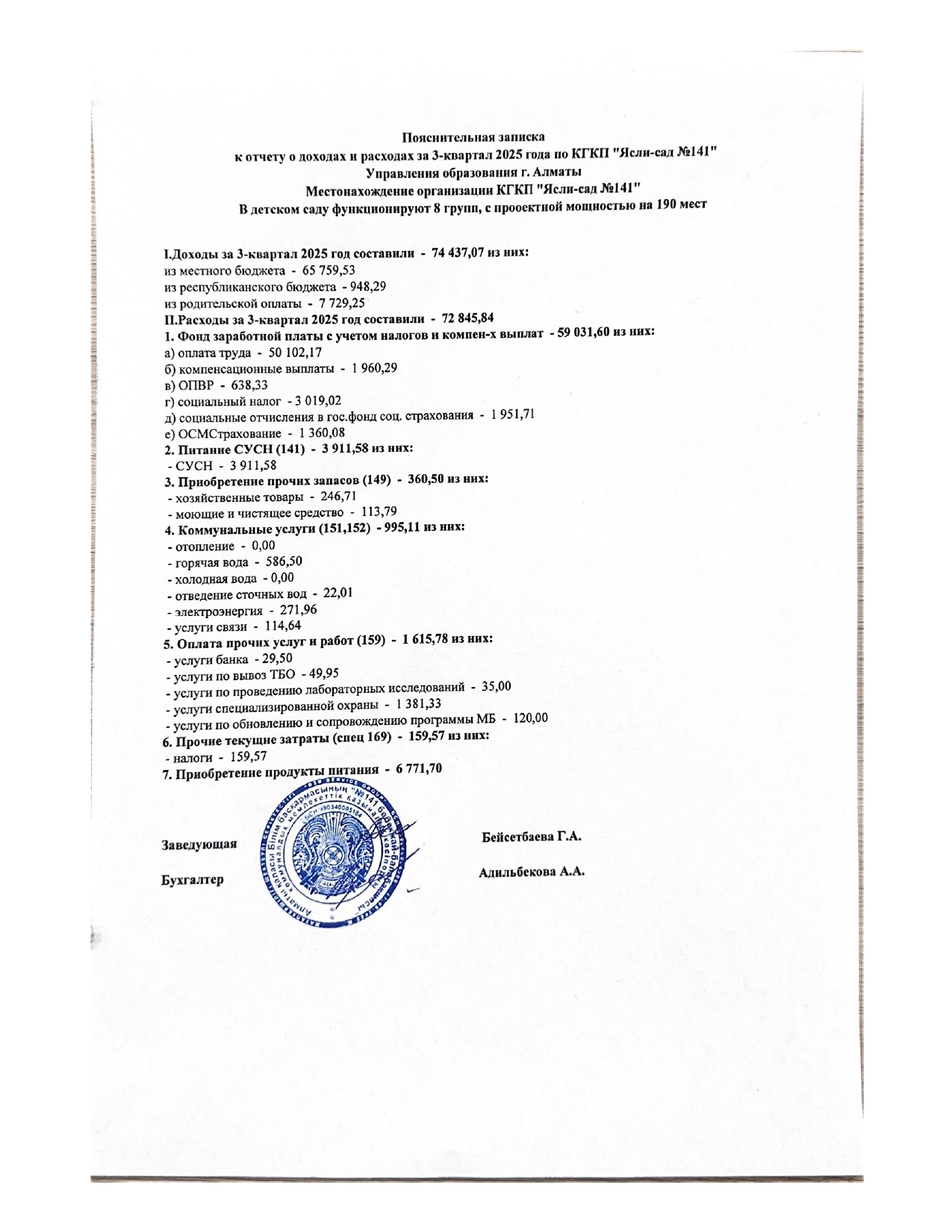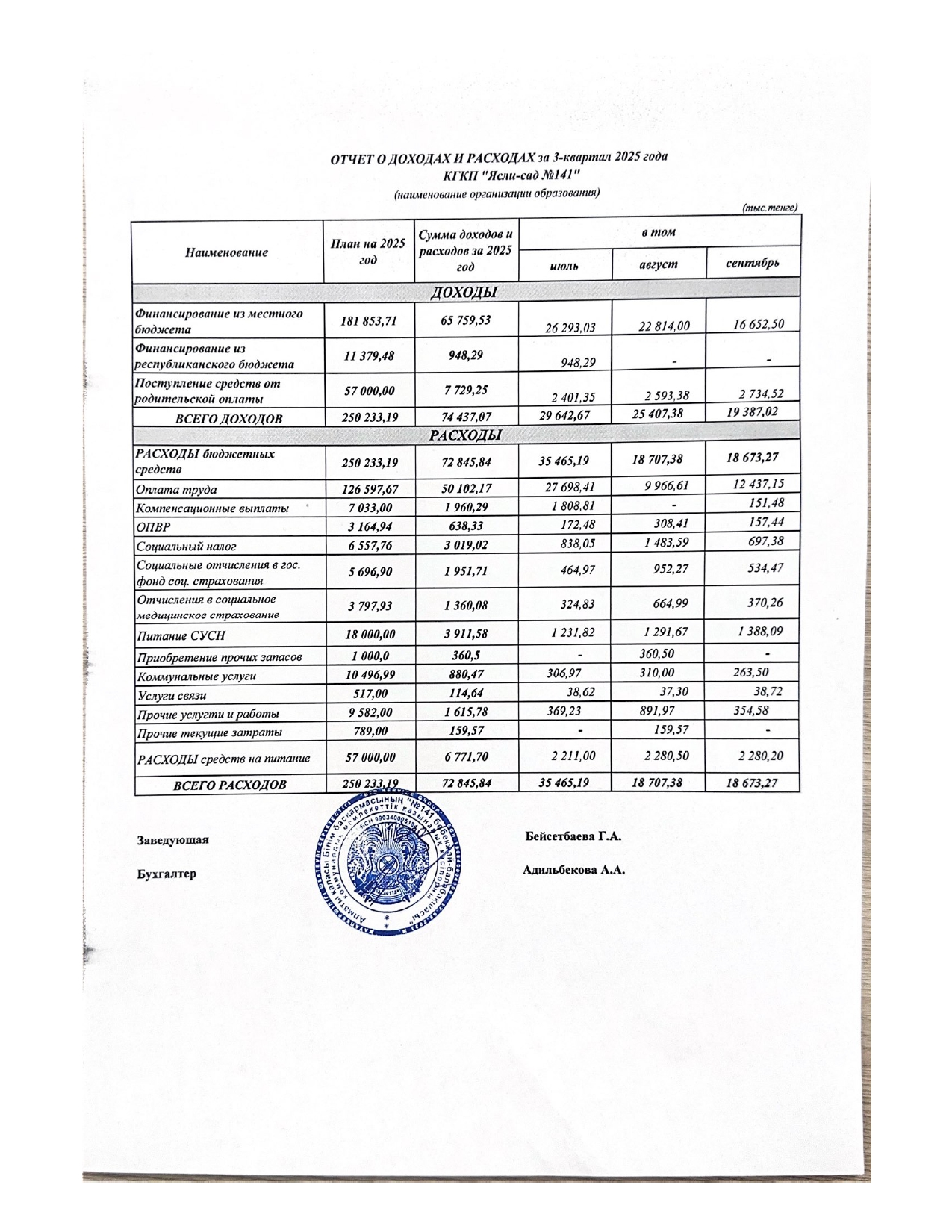 » Отчет о доходах и расходах за 3 квартал 2025 год.